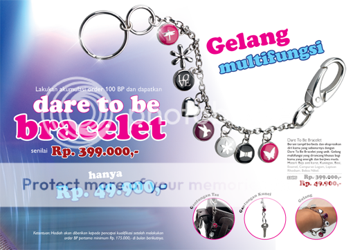 100 BP di bulan april 2011, maka Anda berhak mendapatkan gelang multifungsi D2B (Dare To Be) Bracelet senilai Rp. 399.000,- hanya dengan harga Rp.49.900,-. Wow, murah bukan ?!?